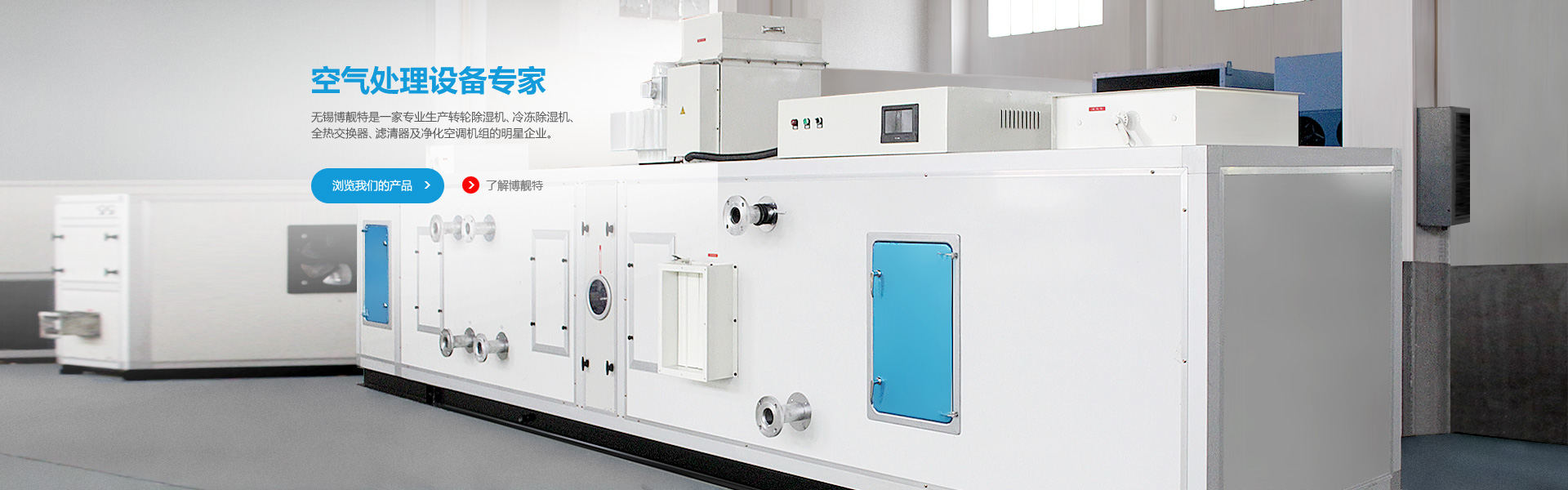 無錫博靚特空氣處理設備有限公司是一家專業生產轉輪除濕機、冷凍除濕機、恒溫恒濕機、全熱交換器、新風處理機及凈化空調機組的明星企業。 公司座落于中國長三角的中心城市——江蘇省無錫市。公司背鄰太湖,旁倚錫宜高速和…